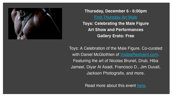 from the visual arts exhibition (in person and via zoom) 2020 Seattle Erotic Arts Festival held at Gallery Erato Seattle. Washington, USA 2020